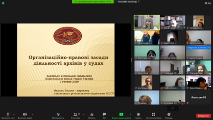 Львівське регіональне відділення Національної школи суддів України провело 3 грудня 2020 року онлайн семінар для працівників апаратів судів на тему: «Організаційно-правові засади діяльності архівів у судах», в якому взяла участь і представник від Любомльського районного суду Волинської області – архіваріус Таїсія Головачук.